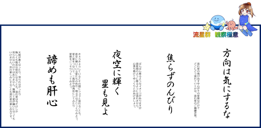 流星群極意。これをココロに。