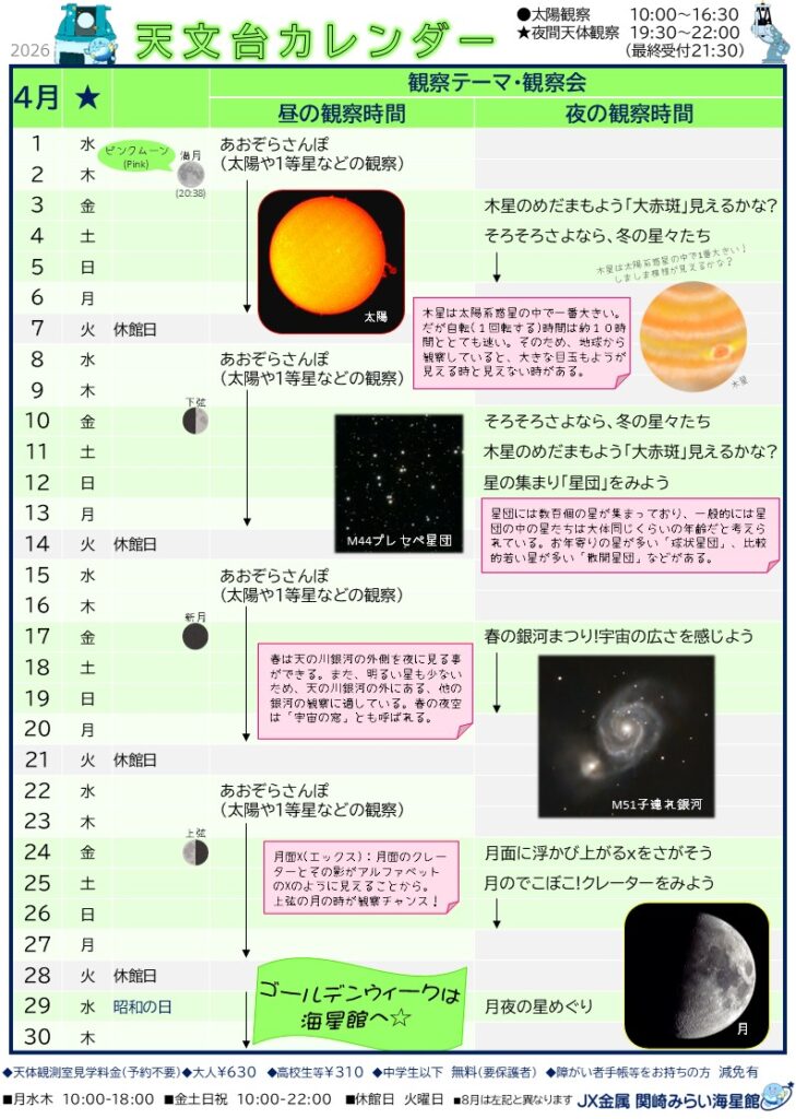 4月 天体観察スケジュール